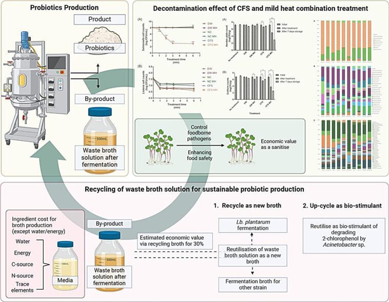 Les scientifiques de Texas A&M AgriLife Research du Département des sciences et technologies alimentaires ont trouvé un moyen de rendre les produits frais plus sûrs en utilisant ce que la plupart jetteraient. Ils ont découvert que les restes de liquide provenant de la fermentation probiotique, appelés bouillons de déchets de culture, peuvent être recyclés pour lutter contre les agents pathogènes d’origine alimentaire.
