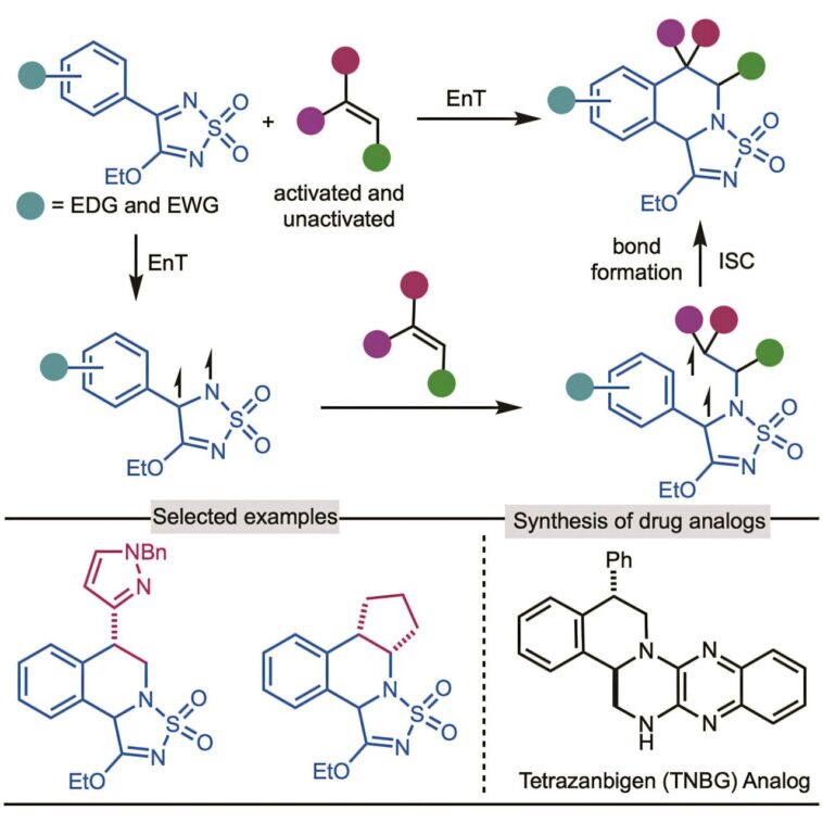 Au lieu d'utiliser des réactions chimiques traditionnelles, les scientifiques exploitent la lumière pour déclencher un processus appelé transfert d'énergie photoindaire, dans lequel la lumière déclenche une réaction contrôlée entre les sulfonylimines (un type de composé chimique) et les alcènes (un autre type de composé), conduisant à la création de tétrahydroisoquinolines – un type de molécule complexe. Cette méthode permet le développement de nouveaux modèles structurels dans les molécules, qui étaient auparavant difficiles ou impossibles à créer en utilisant d'autres méthodes, offrant un moyen plus efficace de fabriquer des molécules complexes.