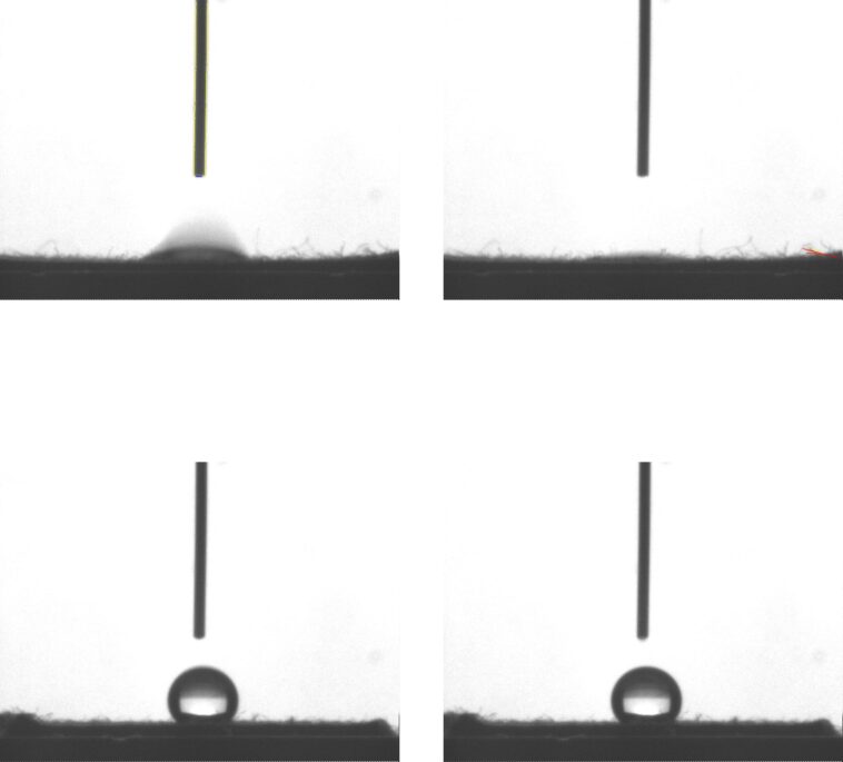 Les chercheurs ont pesé et analysé chimiquement le tissu traité par ECSO en utilisant un type de spectroscopie infrarouge pour s'assurer que les molécules ECSO s'étaient liées avec succès à la surface du tissu. Pour évaluer les qualités d'empelet en eau du tissu fini, les chercheurs ont utilisé une caméra à grande vitesse pour mesurer l'angle de contact auquel les gouttelettes d'eau interagiraient avec la surface du coton.