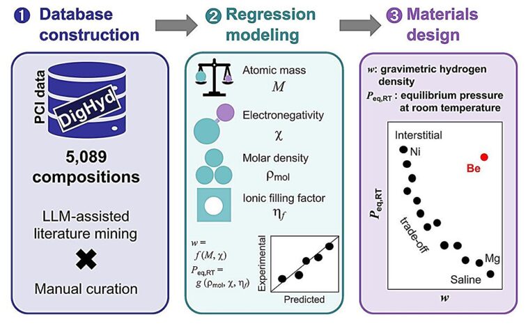 Pour aider à prédire avec précision les mesures de performance des matériaux de stockage d'hydrogène, les chercheurs de l'Université du Tohoku ont utilisé une infrastructure de données nouvellement établie : la plateforme numérique d'hydrogène (DigHyd). DigHyd intègre plus de 5 000 enregistrements expérimentaux méticuleusement sélectionnés issus de la littérature, soutenus par un modèle de langage d’IA. L'ouvrage est publié dans la revue Science chimique.